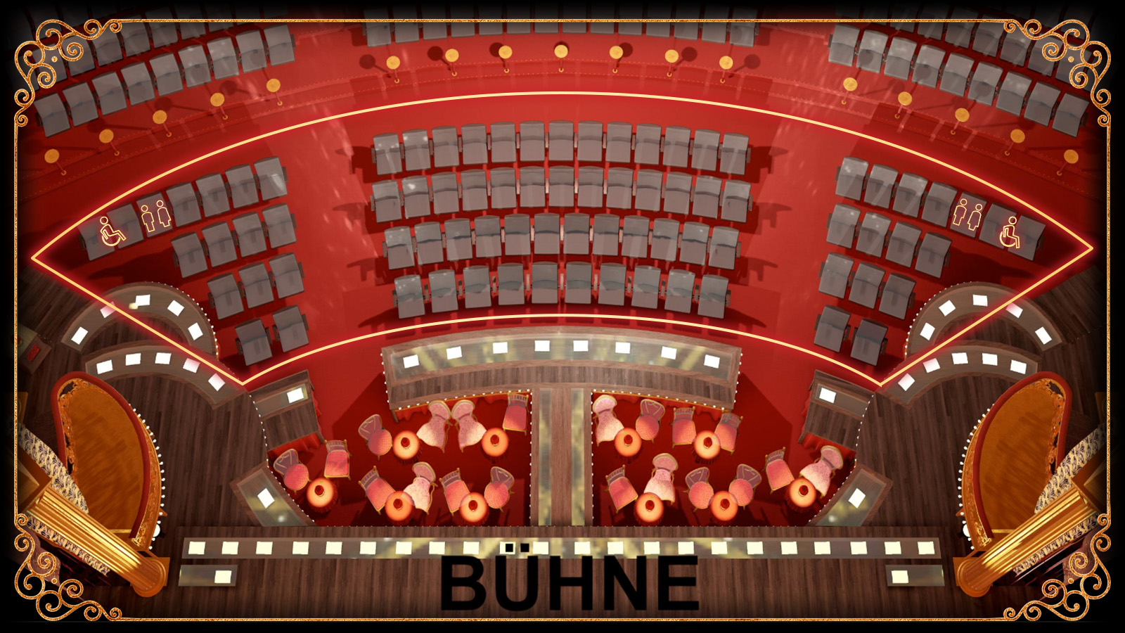 Die Reihen 1 bis 4 im Parkett des Musical Dome in Köln sind barrierefrei zu erreichen. Dorthin gelangst du über einen gesonderten Zugang zum Saal. Bitte melde dich bei Ankunft an das Servicepersonal von Moulin Rouge.